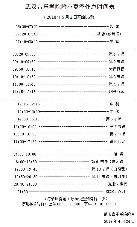附中附小夏季作息时间表
